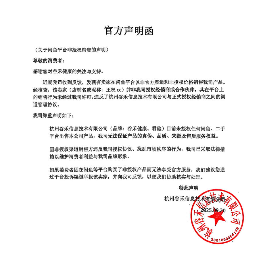 官方声明函——咸鱼