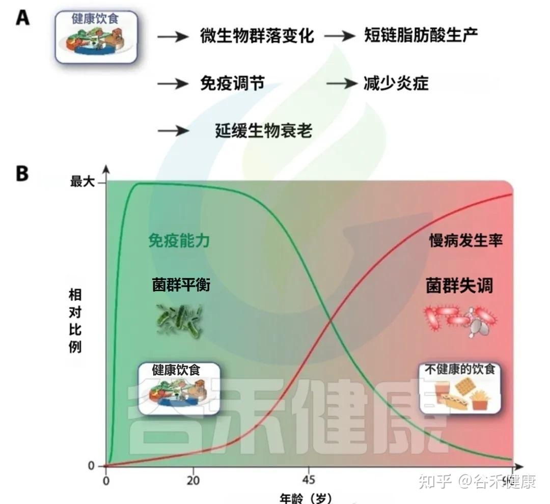 在这个复杂系统中,饮食营养扮演了连接环境、肠道与宿主免疫的中心枢纽角色。因此,我们的餐盘实质上成为了调控自身衰老速度和健康轨迹的“遥控器”。饮食中的每一个选择,都在向这个复杂的“微生物-免疫-炎症”网络发送信号,或促进平衡与修复,或加剧失调与衰败。