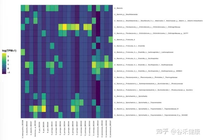 图中是annoSnake识别出的主要菌群,结果显示不同取食类型白蚁肠道的优势类群模式,这与已知发现相符,通常,食草和食木的白蚁其肠道群落以螺旋体为主,而食腐殖质和土壤的白蚁则富含梭菌(clostridia)。