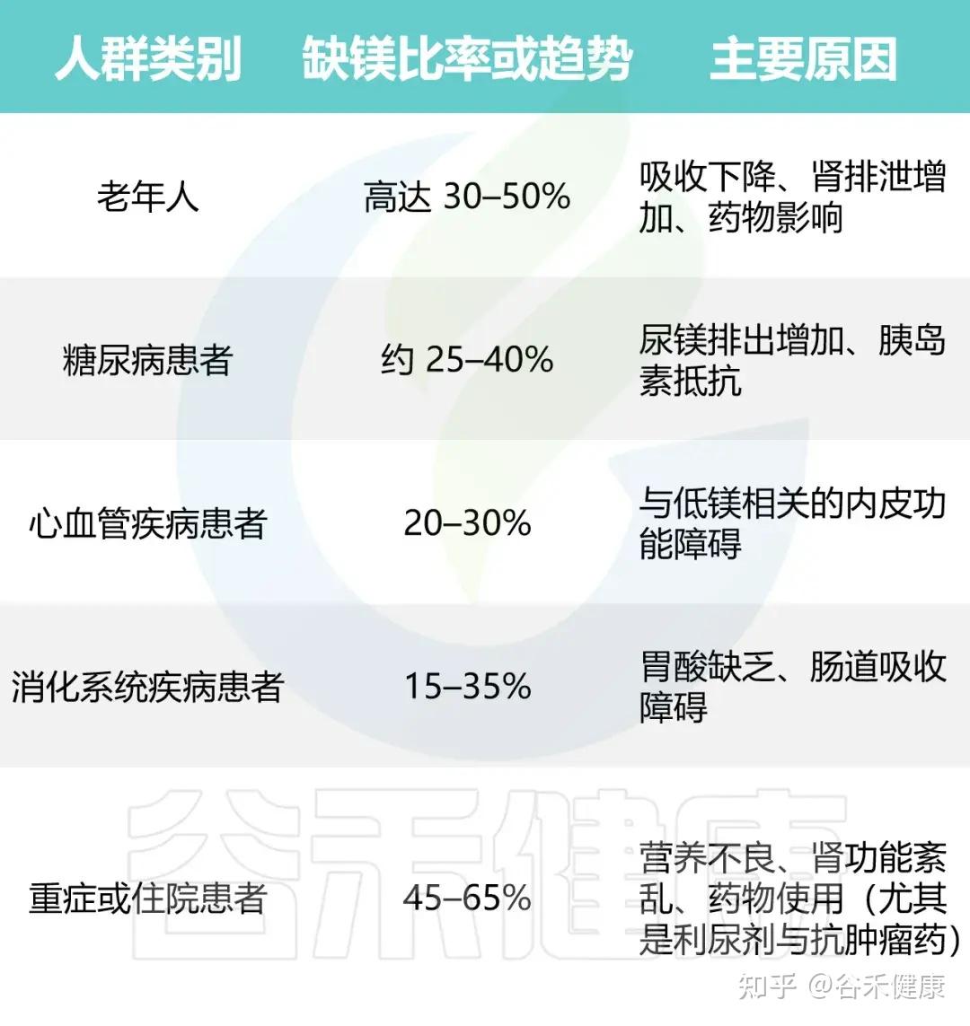 •糖尿病与代谢综合征患者:镁可改善胰岛素敏感性,推荐持续低剂量补充。