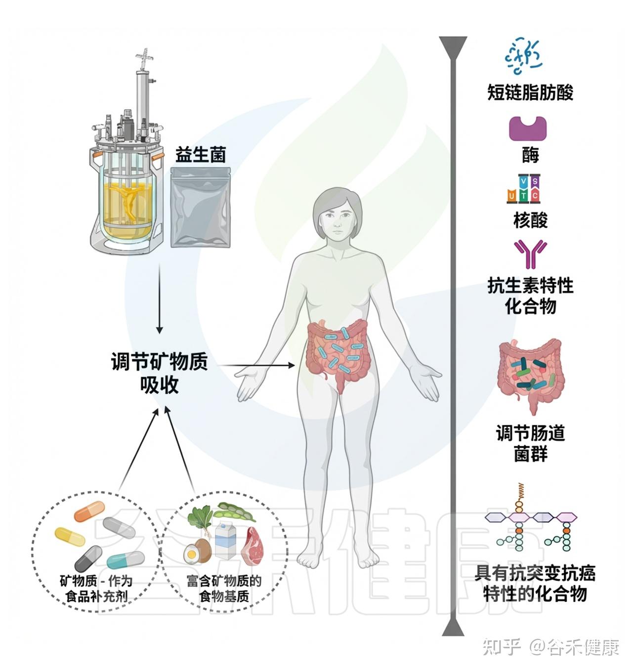 值得注意的是,近年来肠道微生物群在镁吸收、储存与代谢调控中的重要作用逐渐被揭示。菌群不仅影响了镁的生物利用效率,还通过其代谢产物影响宿主的免疫、炎症及能量代谢网络。