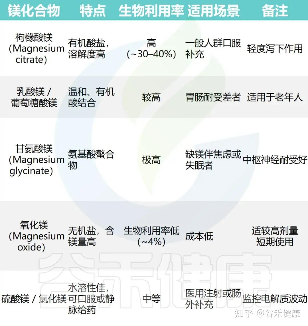 •老年人:胃酸分泌低、吸收率下降,应选择有机镁盐并配合益生菌。