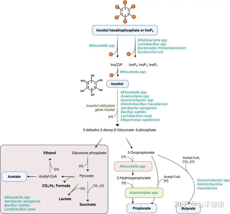 Anaerostipes属等菌种能将肌醇转化为丙酸和乙酸,这两种主要的短链脂肪酸参与抑制肝脏糖异生和改善胰岛素敏感性。