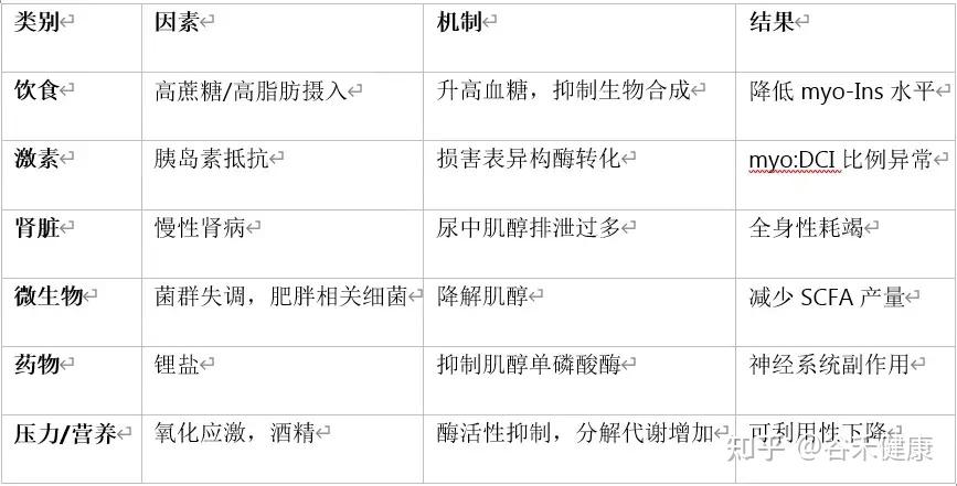 虽然不存在“经典的肌醇缺乏症”,但经验证据表明,组织中myo‑Ins水平低下与以下情况有关: